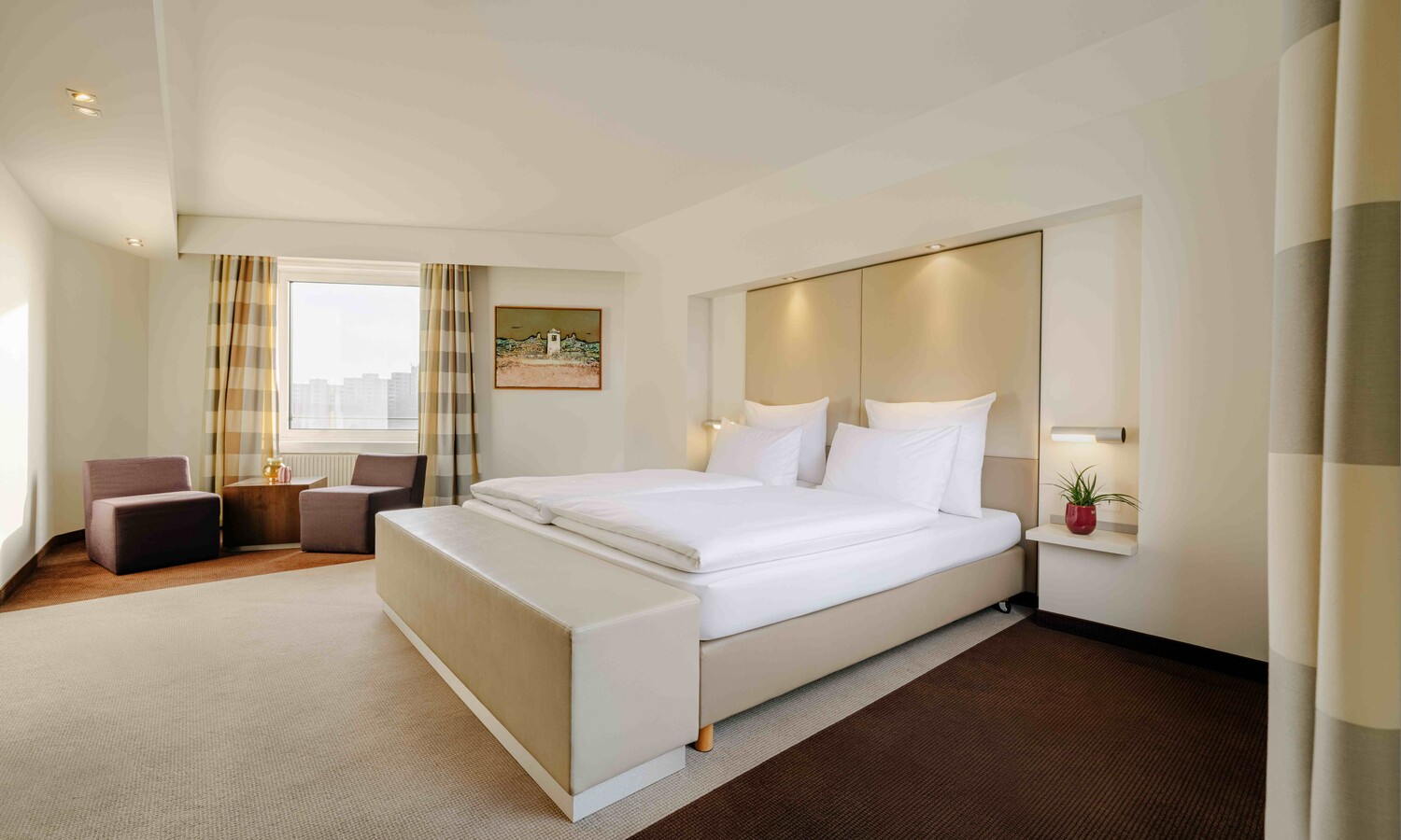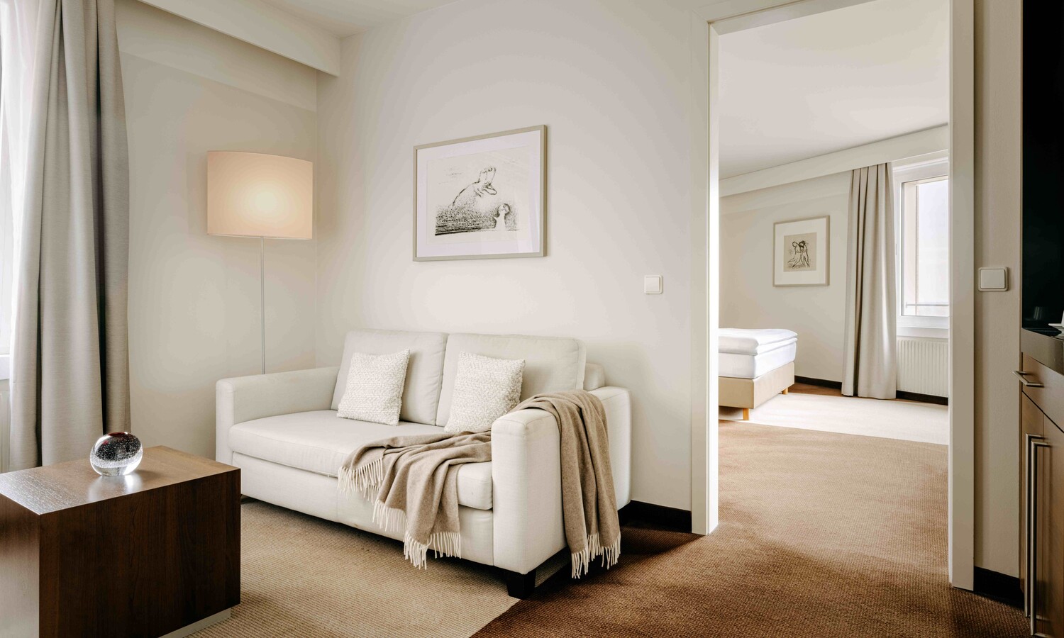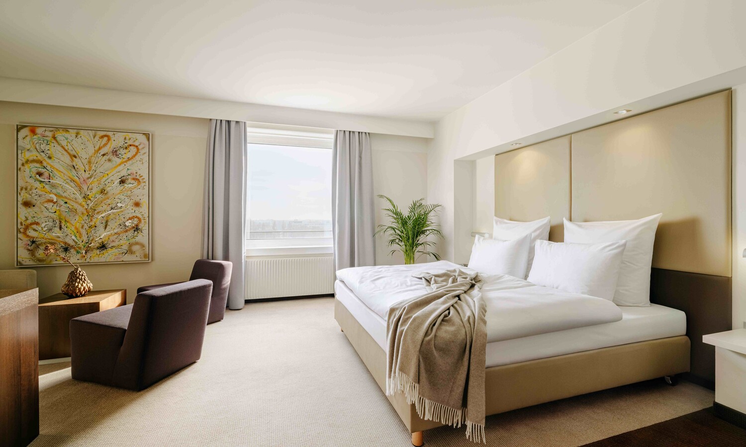 Offener Wohn- und Schlafbereich, individuelle Farbakzente, ausgewählte Kunst – die Junior Suiten verbinden Großzügigkeit mit persönlichem Stil.