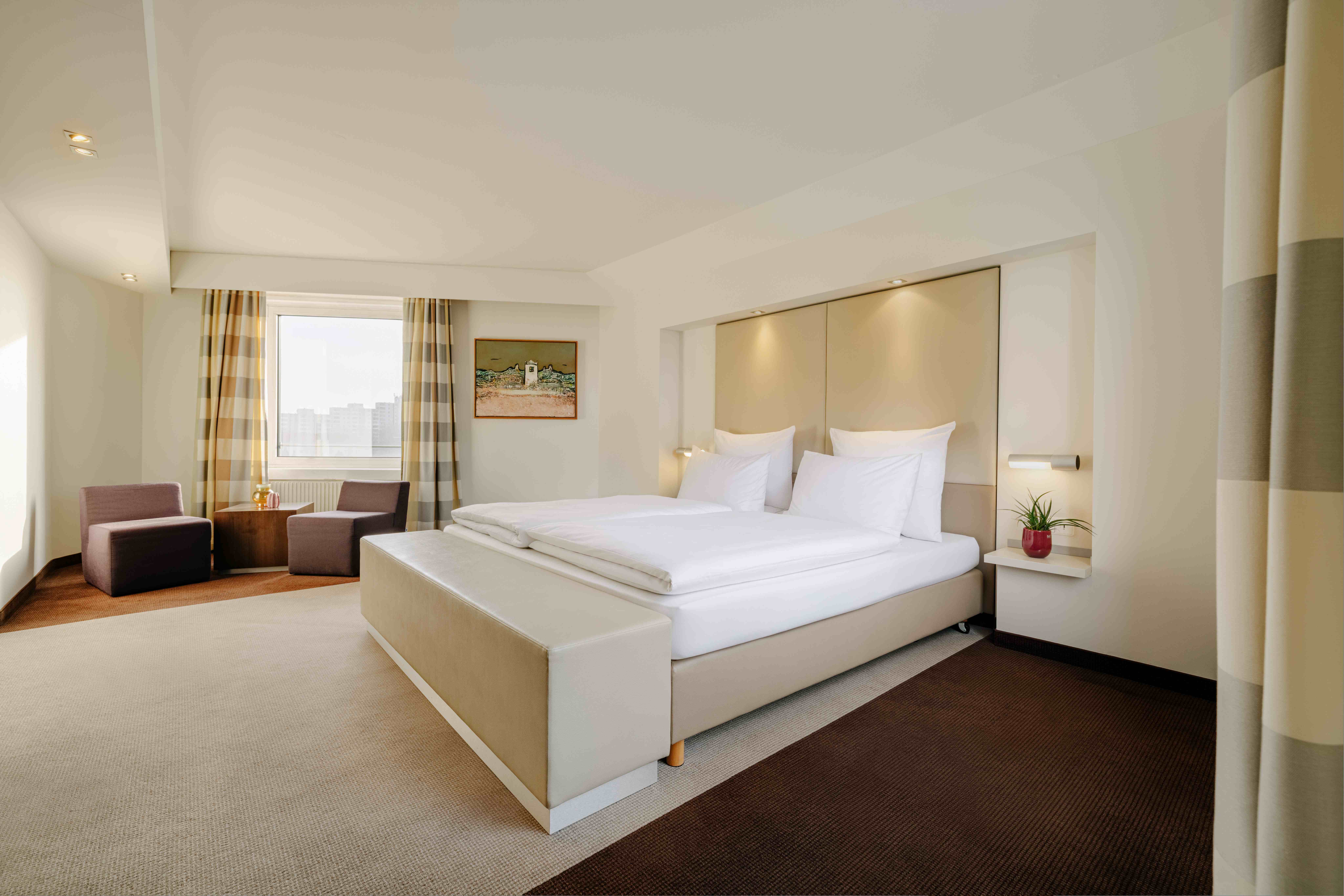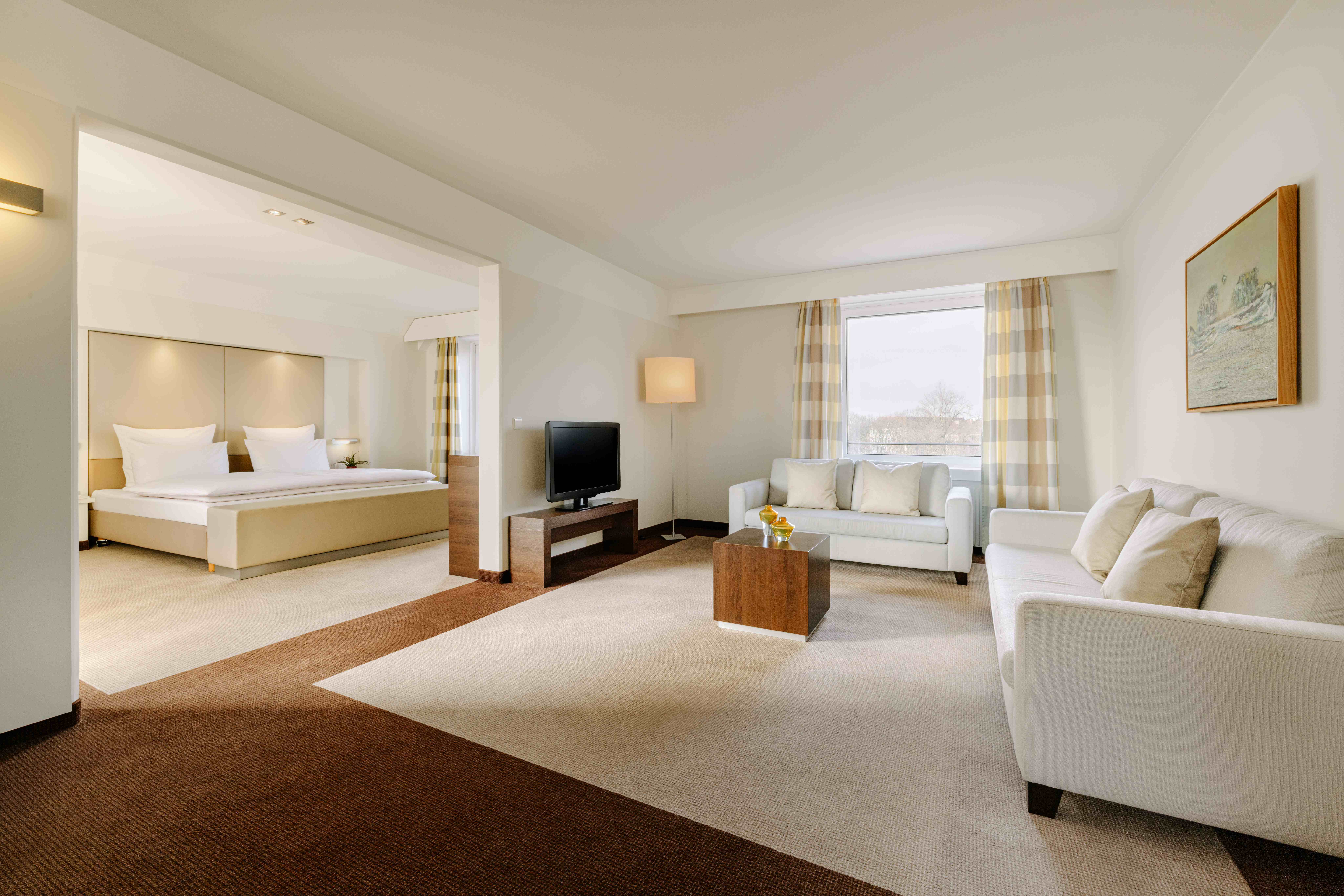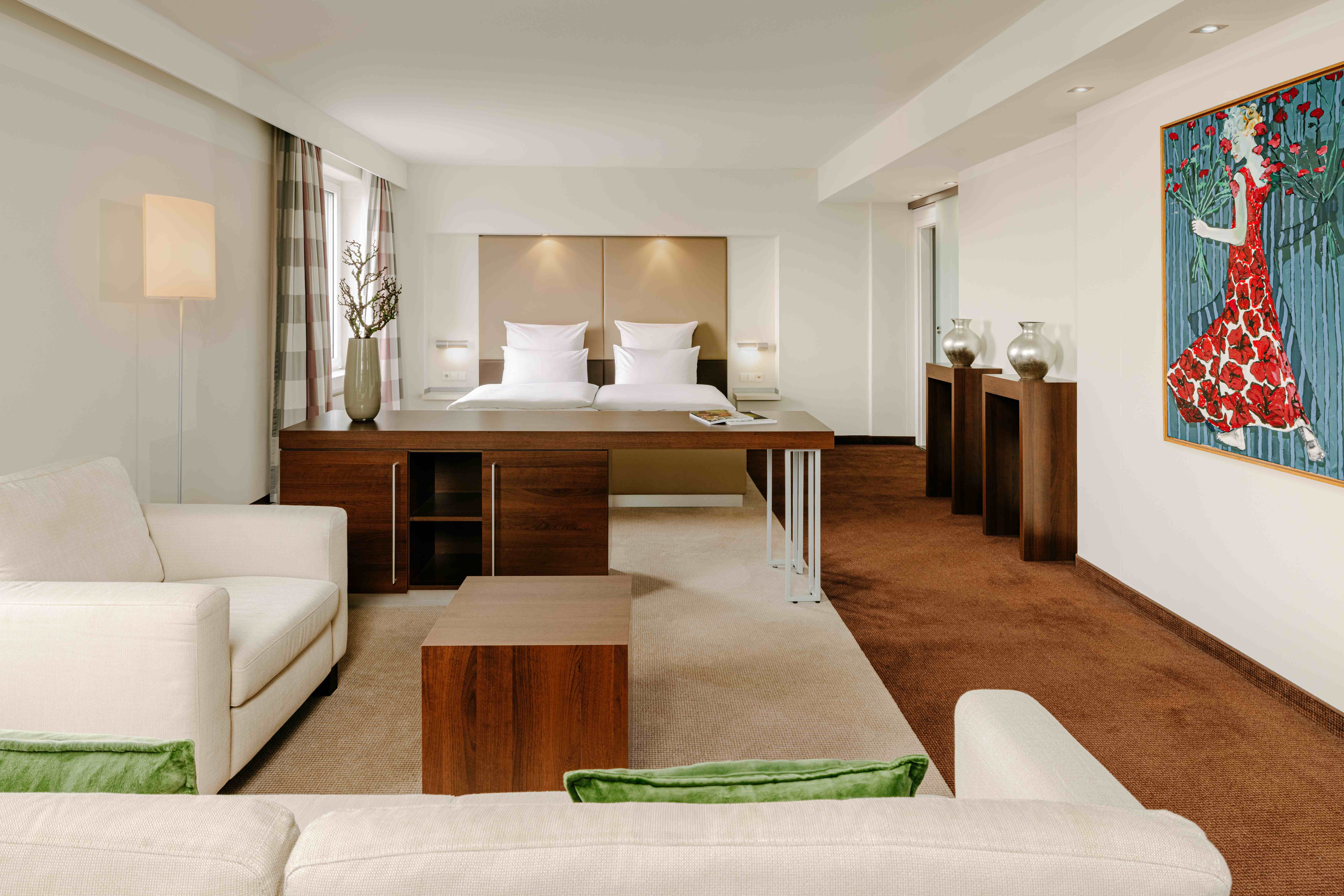 Mit separatem Wohnbereich, hochwertiger Ausstattung und wohnlichem Komfort bieten die Executive Suiten Raum für Anspruch und Ruhe.
