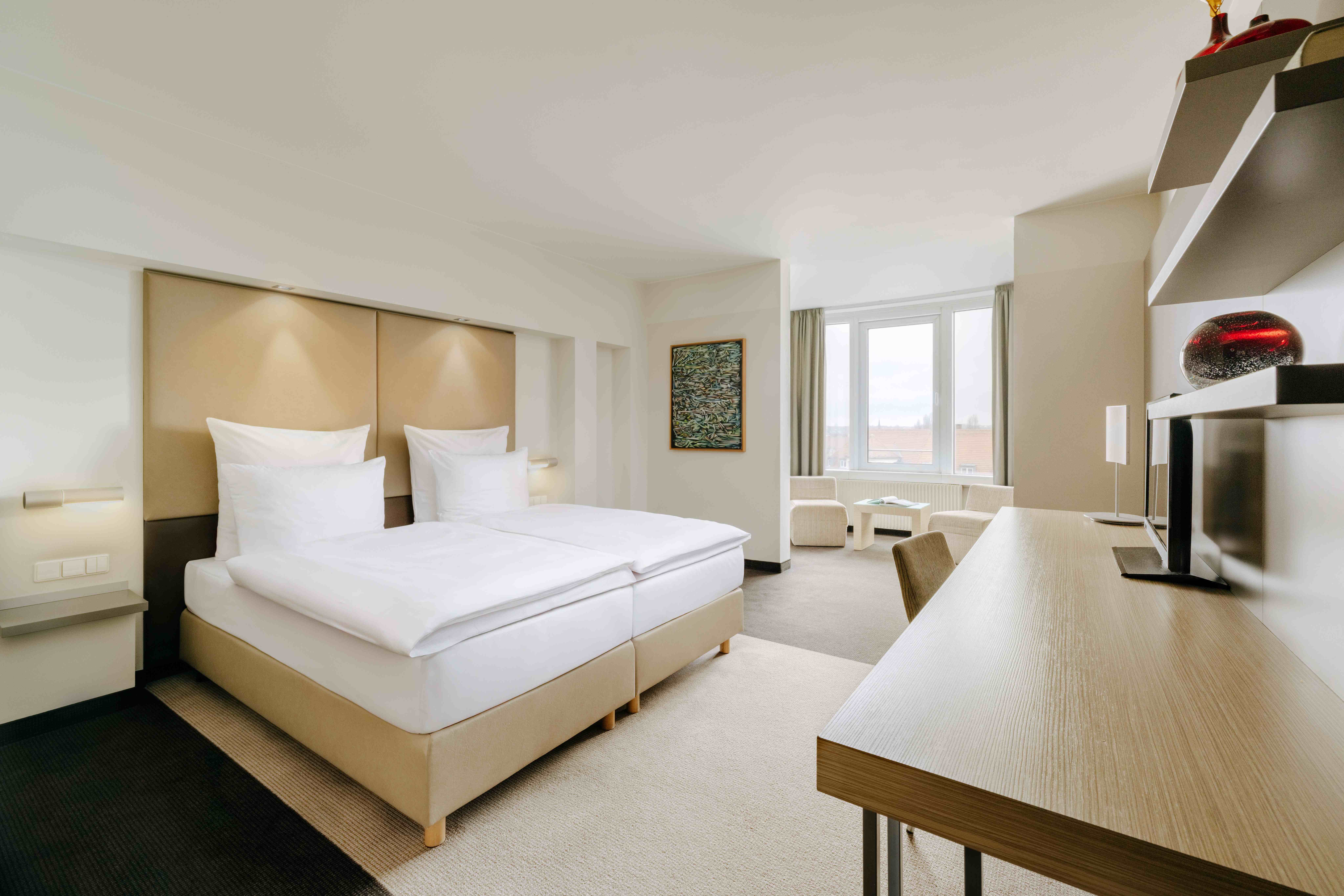 Die zeitgemäße technische Ausstattung und die große Arbeitsfläche sind speziell auf die Bedürfnisse der Geschäftsreisenden ausgerichtet.