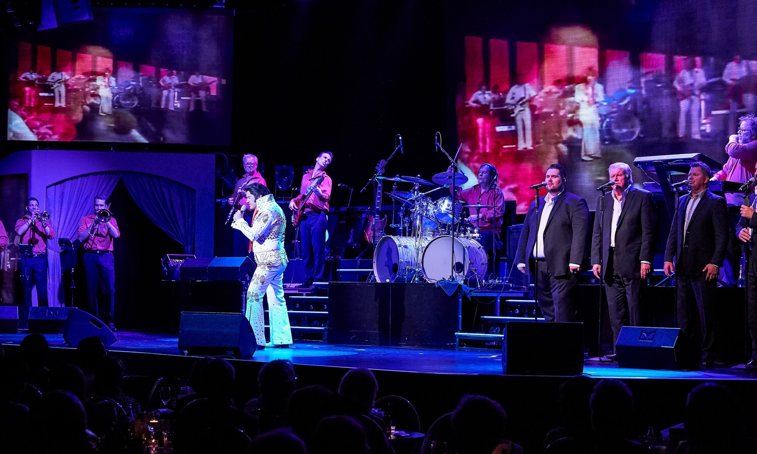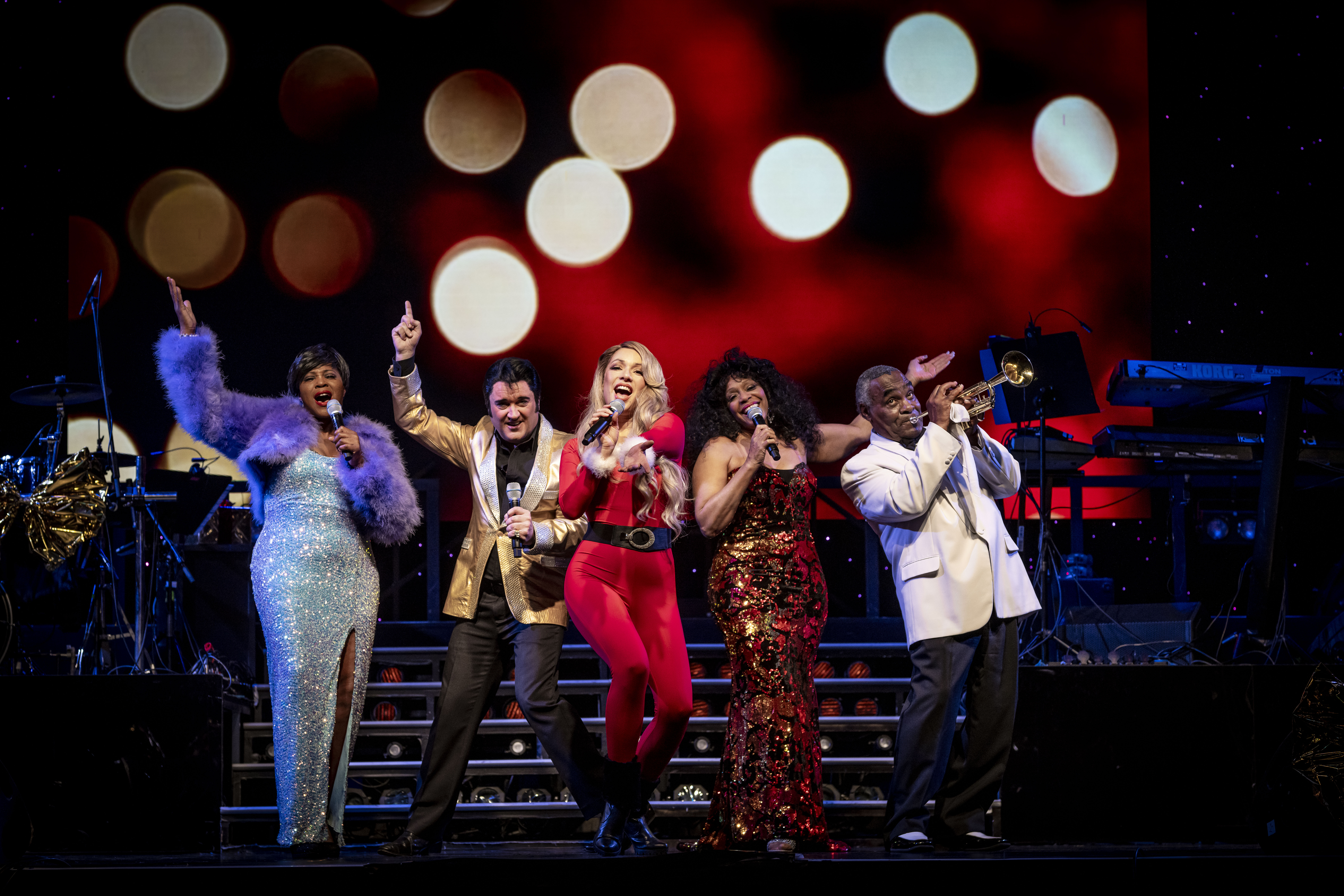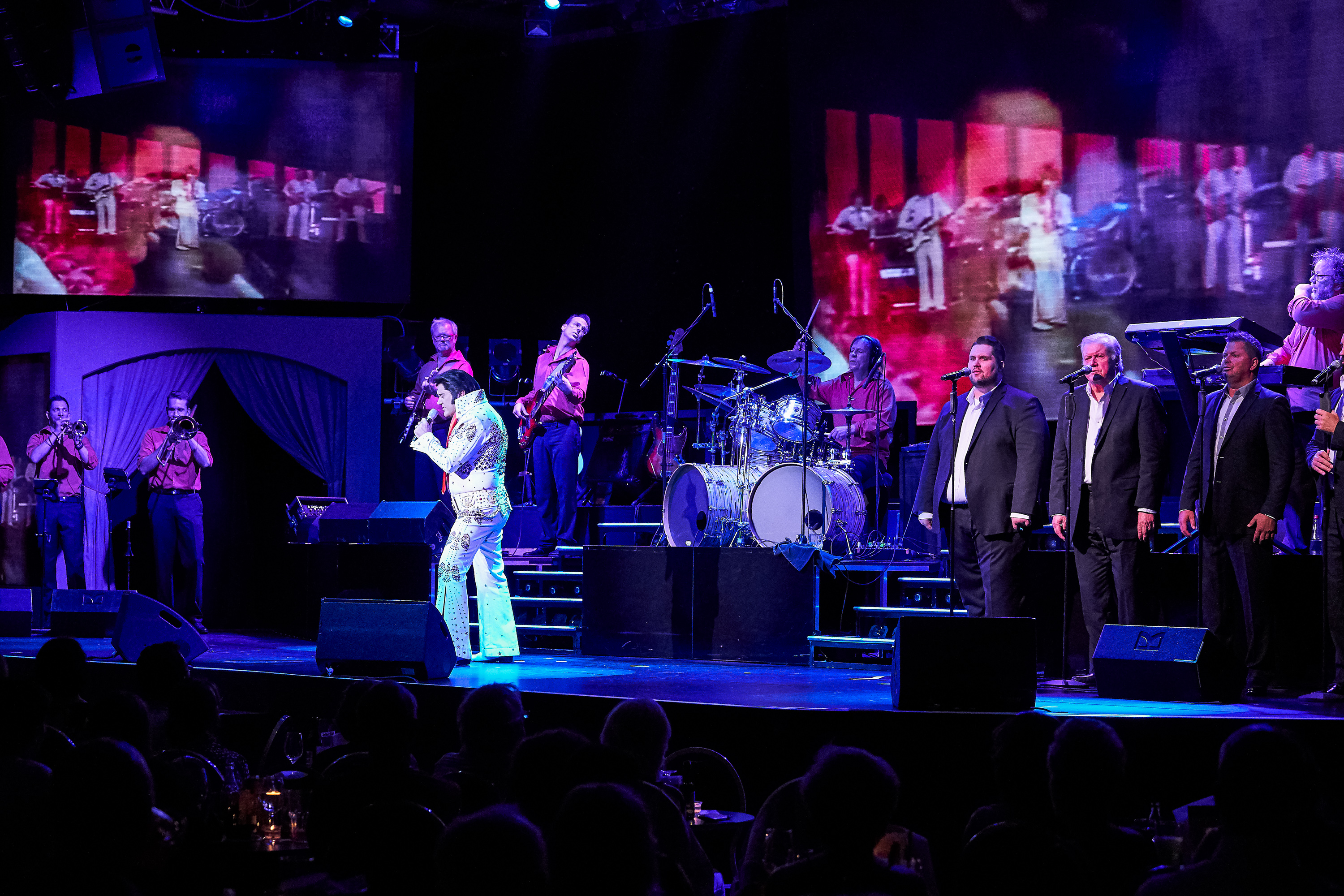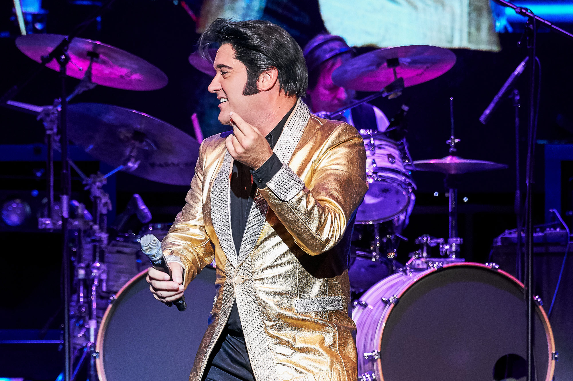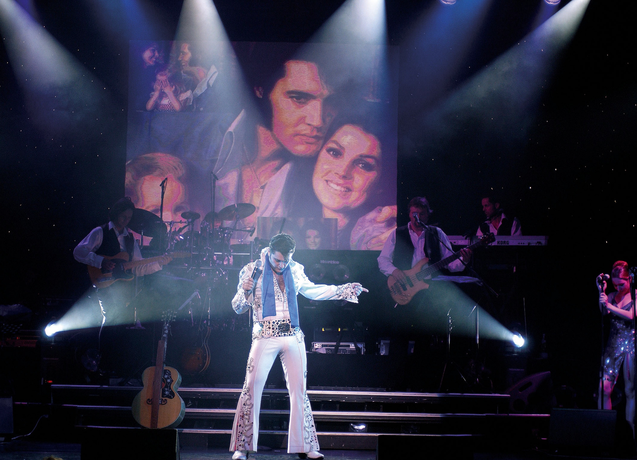 Das Elvis Musical in Berlin ist eine spektakuläre Show, die Elvis Presleys unglaubliche Karriere und sein musikalisches Vermächtnis zelebriert. Das Elvis Musical bietet den Zuschauern eine unglaubliche Reise durch das Leben und die Musik des "King of Rock 'n' Roll". Von seinen Anfängen in Memphis bis hin zu seinen legendären Auftritten in Las Vegas und der ganzen Welt, wird die Show mit Elvis' ikonischen Songs wie "Heartbreak Hotel", "Hound Dog", "Jailhouse Rock", "Suspicious Minds" und vielen anderen begeistern. Die Live-Band und Grahame Patrick - der zu den weltweit besten Elvis-Darstellern zählt - bringen die Energie und den Sound von Elvis' Musik auf die Bühne. Die Bühneneffekte und das Lichtdesign sind atemberaubend und schaffen eine magische Atmosphäre, die das Publikum in eine andere Zeit und Ära versetzt. Als Highlight ist das legendäre "The Stamps Quartet" mit von der Partie. Musiklegende Ed Enoch ist als Original-Mitglied auch dabei. In mehr als 1.000 Konzerten stand der mittlerweile 81-Jährige damals mit Elvis Presley auf der Bühne. Auch sang er auf dessen Beerdigung im Sommer 1977. In ELVIS - Das Musical singt Enoch zusammen mit Grahame Patrick. Dazu laufen auf den Leinwänden die legendären Aufnahmen aus dem Leben des Originalstars.