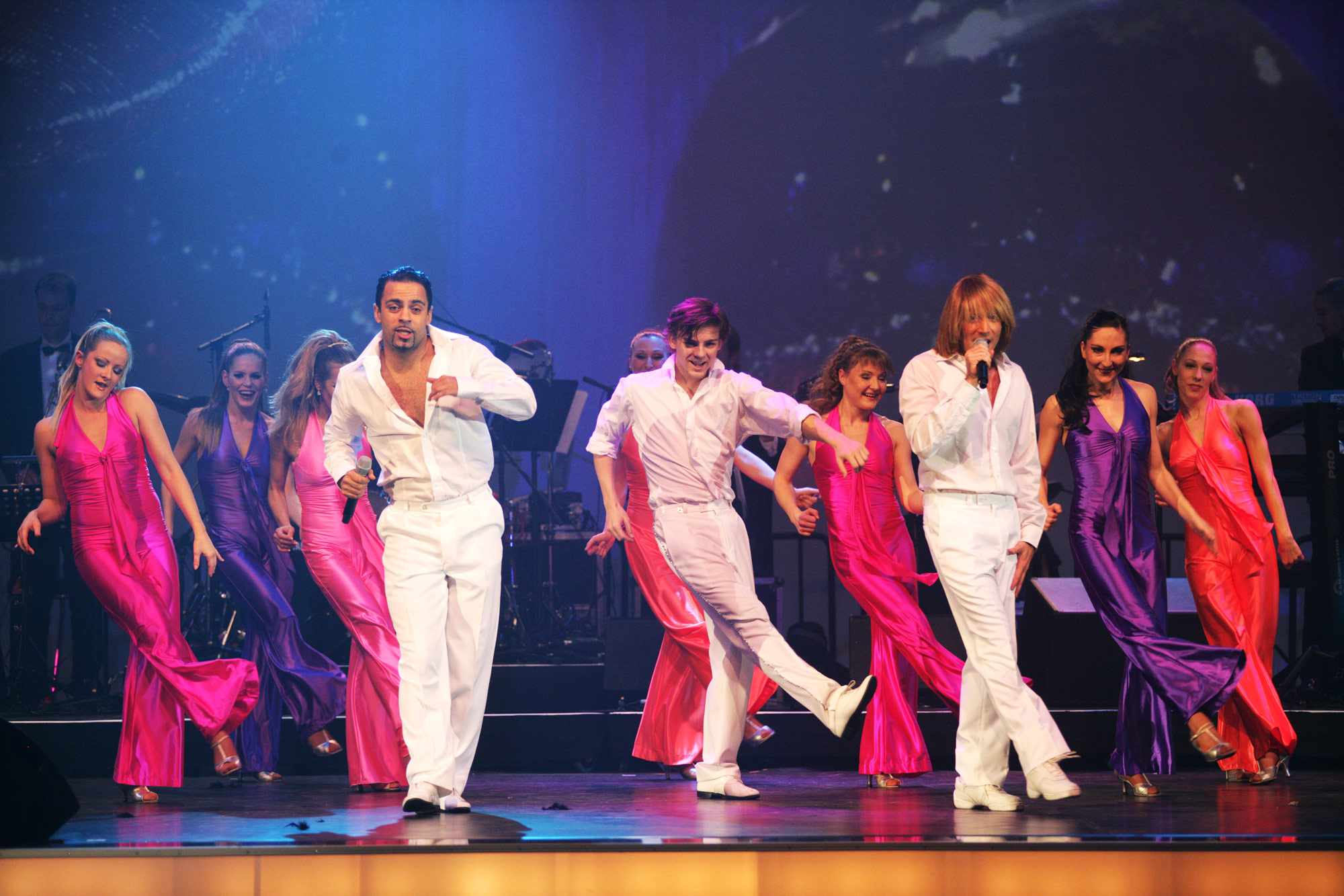 „The Tribute to ABBA & Boney M.” nimmt das Publikum mit auf eine Zeitreise in die 70er. Im ersten Teil werden ABBA-Hits wie „Waterloo", „Mamma Mia" und „Take a Chance On Me" präsentiert – von einer Formation, die den Schweden nicht nur ähnlich sieht, sondern auch vom Gesang her mit ihren Vorbildern übereinstimmt. Im Anschluss präsentieren vier erstklassige Künstler „Boney M." mit einer ausgelassenen Bühnenshow. Erfolgshits wie „Rivers of Babylon" und „Daddy Cool“ garantieren beste Stimmung.