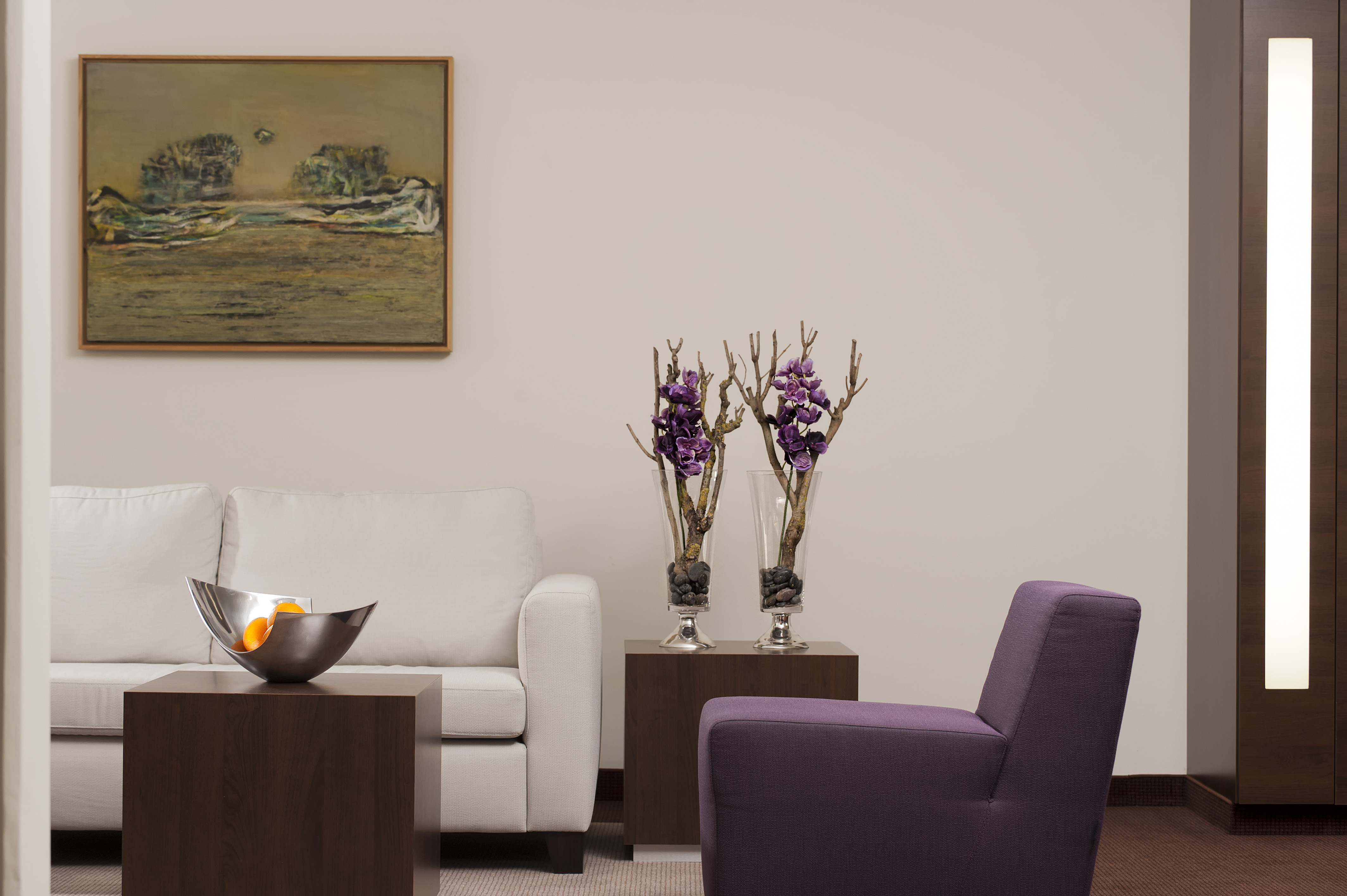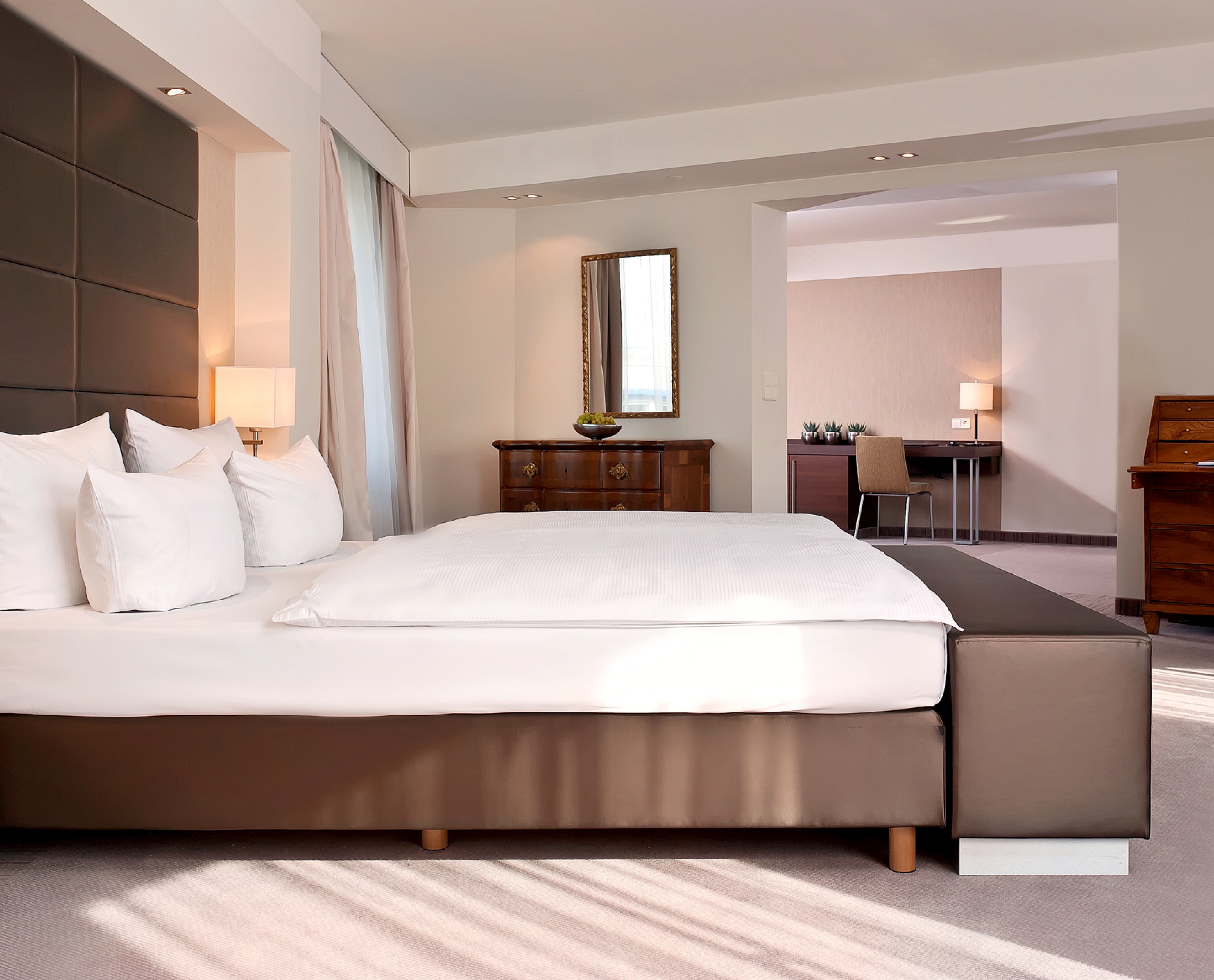 The spacious junior suites offer separate living and sleeping areas and feature distinctive styles thanks to selected contemporary furnishings, colour accents and works of art.